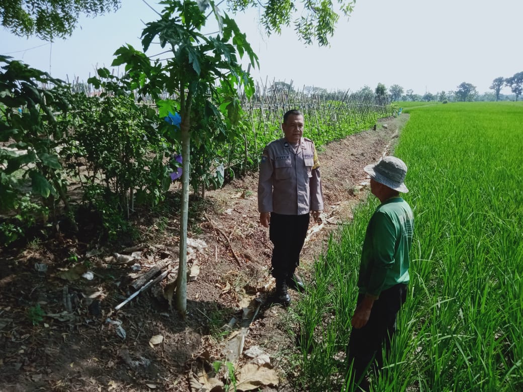 Dalam kunjungannya ke area pertanian lokal, Aiptu Pipit M terlihat aktif berinteraksi dengan petani dan masyarakat, sementara di sekitarnya terlihat kebun-kebun yang ditanami berbagai komoditas seperti cabai dan terong, menunjukkan hasil dari pemanfaatan lahan produktif. Sebuah greenhouse juga terlihat di latar belakang, mengindikasikan adanya upaya modernisasi pertanian.